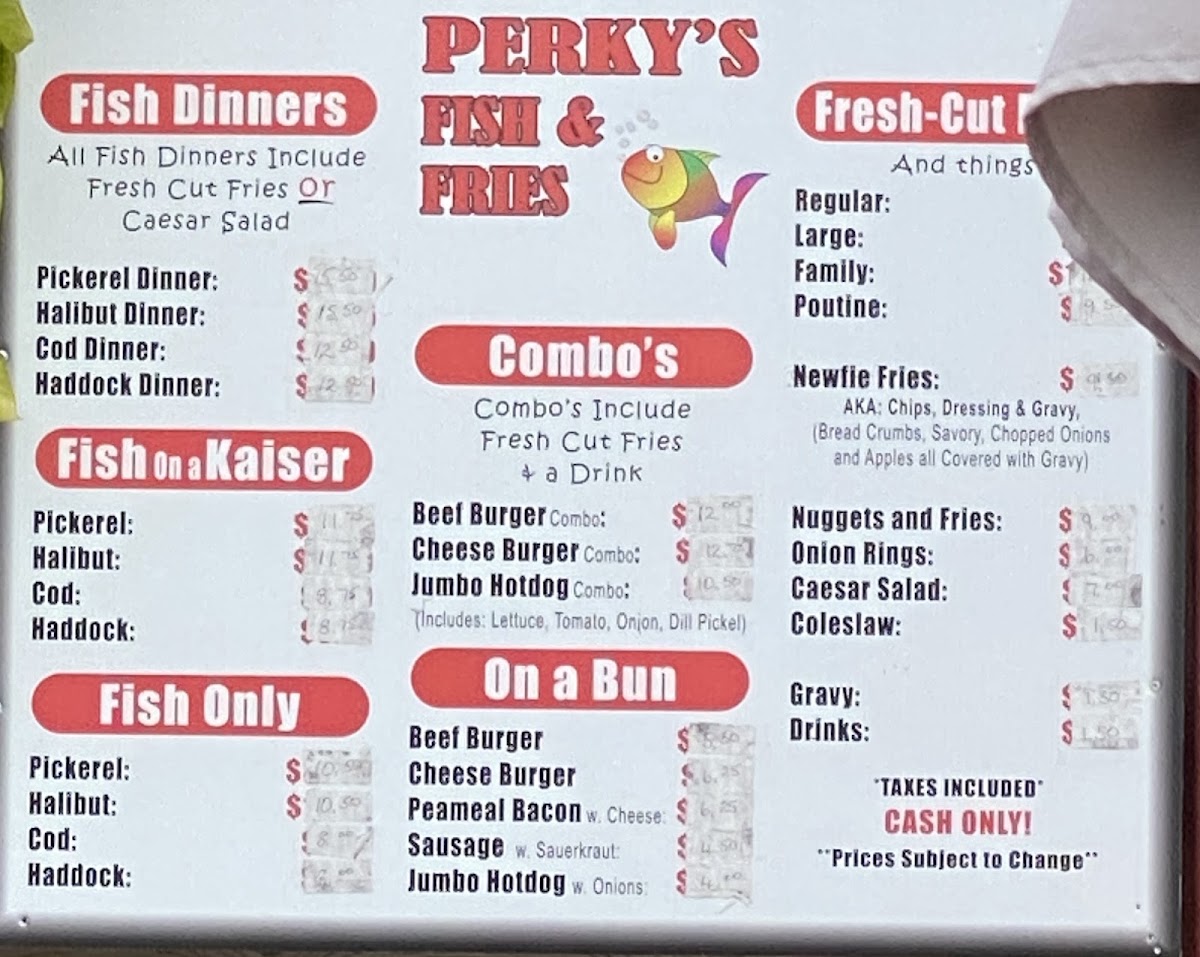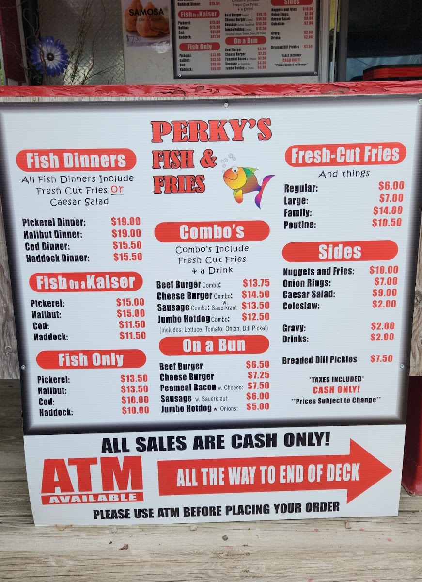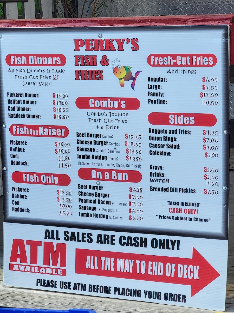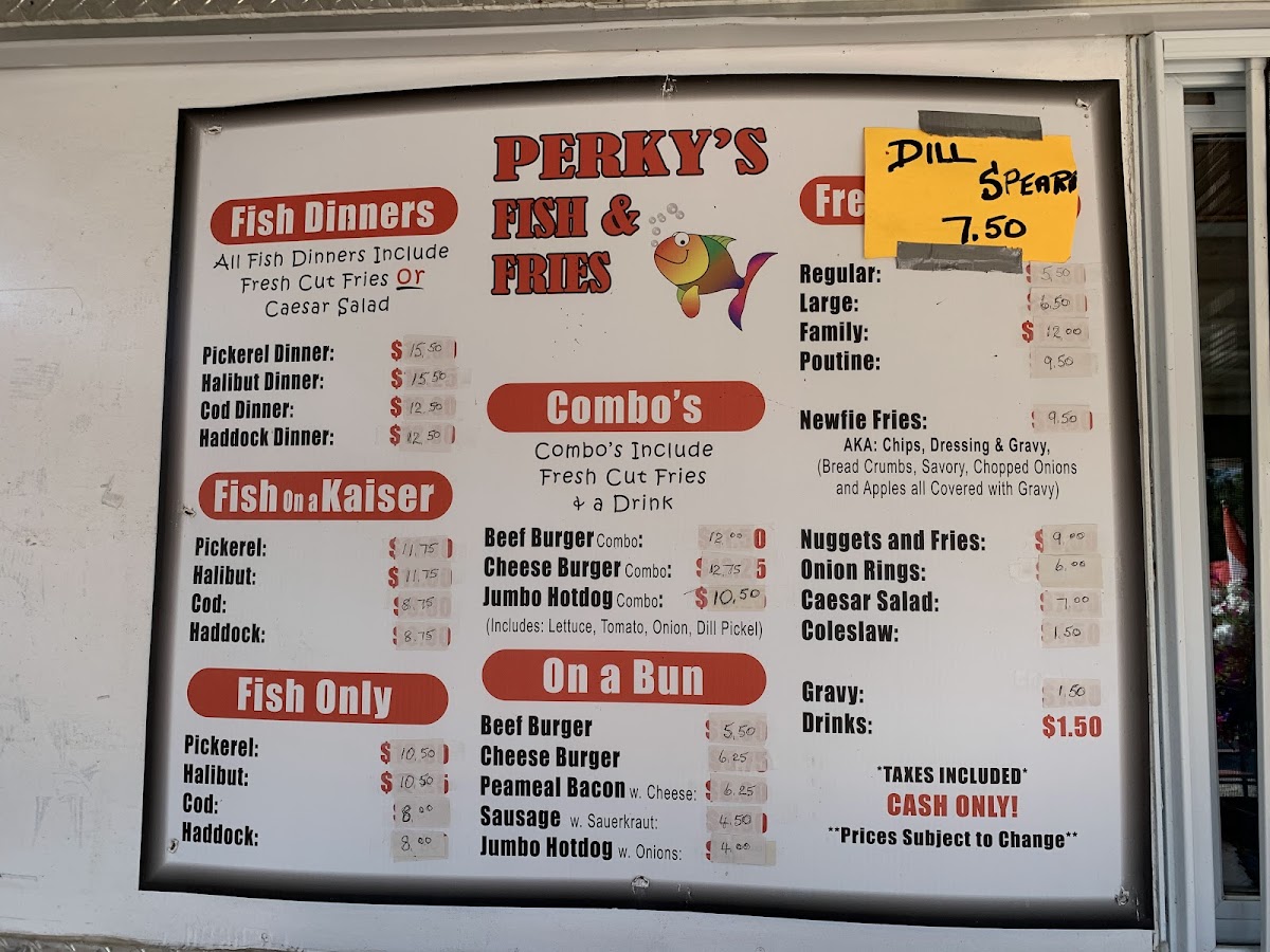 Perky's Fish & Fries offers a varied and tempting menu perfect for satisfying any craving. For those craving a hearty meal, the Beef Burger Combo, Cheese Burger Combo, and Sausage Combo are delicious choices, with each combo likely including a side and drink, although specific prices aren't listed. Their Jumbo Hotdog Combo is also a classic option. If you're in the mood for a snack or side dish, they offer Nuggets and Fries, crispy Onion Rings, a fresh Caesar Salad, and creamy Coleslaw. For a lighter bite, you can go for one of their sandwiches on a bun, like the juicy Beef Burger, Cheese Burger, or Peameal Bacon Sausage. They also offer a Jumbo Hotdog for those looking for a simple yet satisfying option. Fish lovers will appreciate their Pickerel, Halibut, Cod, and Haddock, available both as single servings or in full Fish Dinners such as the Pickerel Dinner, Halibut Dinner, Cod Dinner, and Haddock Dinner. And for those who can't get enough cheese, there are Extra Cheese Curds available to elevate any meal. Whether you're in the mood for a classic burger or some fresh fish, Perky's offers something for everyone.